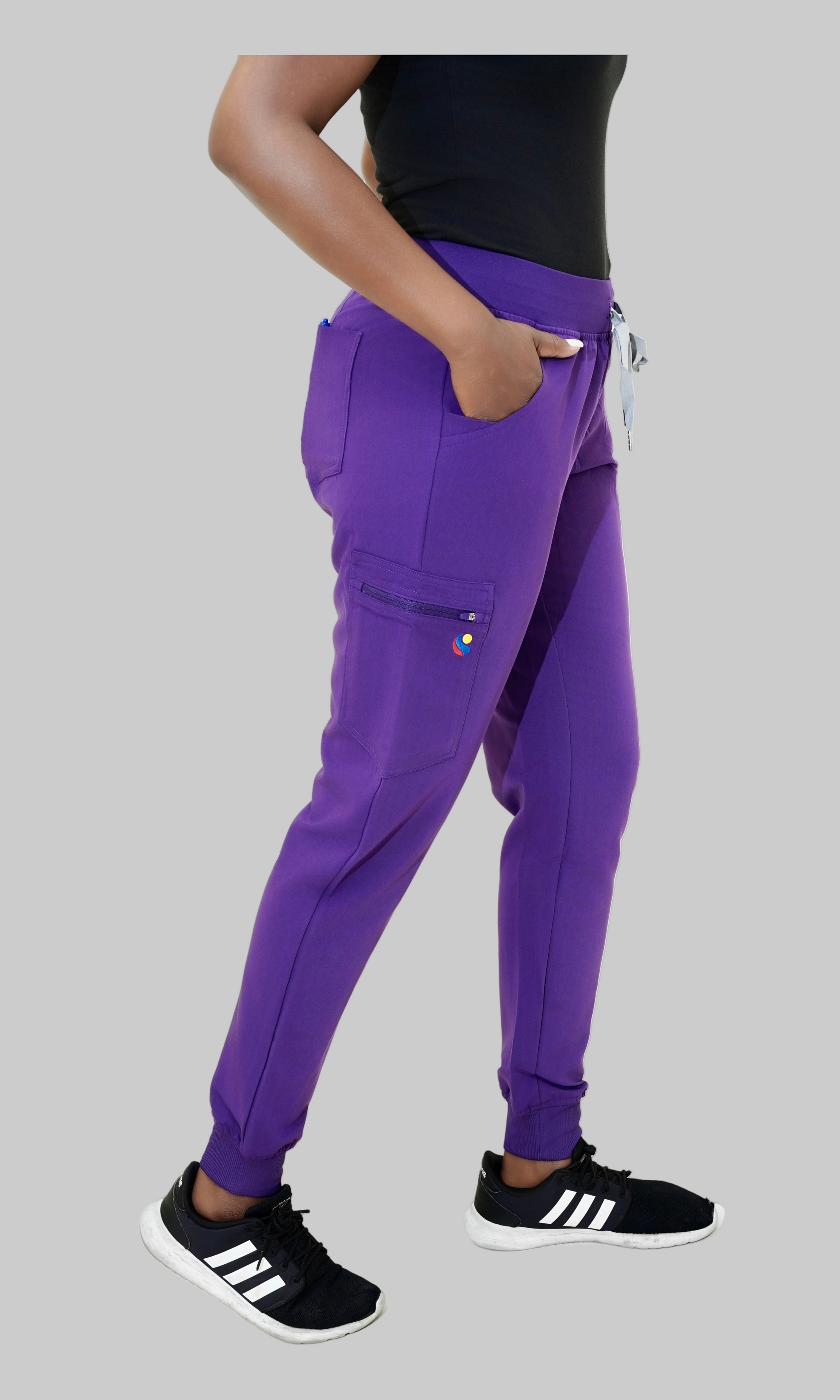 - Jogger Pants: Athletic-inspired comfort with stretch waist and drawstring closure, straight leg with stretch ankle cuffs, and six strategic pockets (2 hip, 2 hand, and 2 zippered cargo pockets)